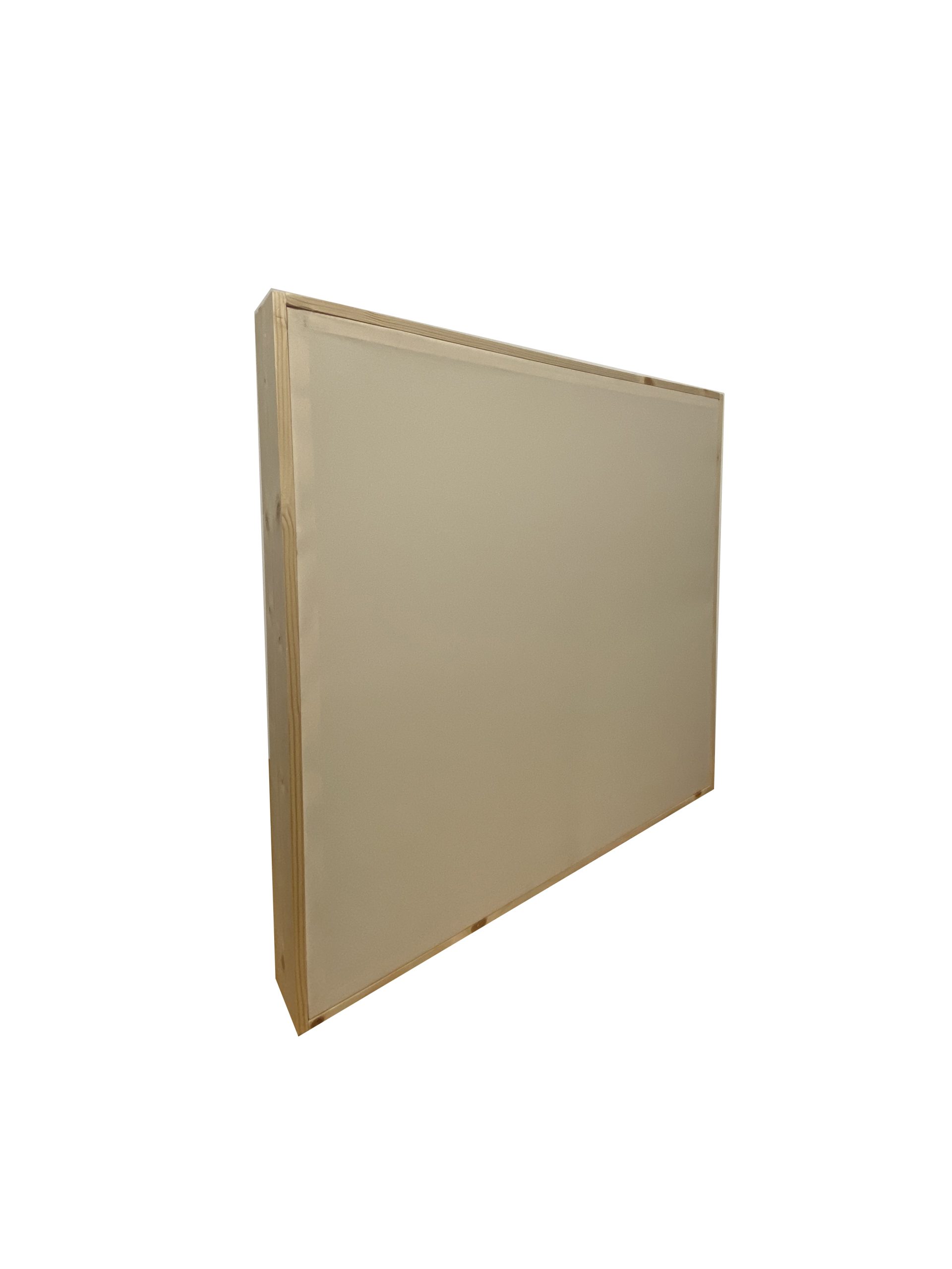 Panel acústico absorbente de 62cm con marco de madera visible, frente forrado de tela diseñado para reducir la reverberación.